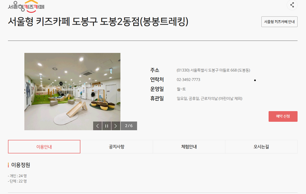 - 서울형 키즈카페 도봉2동점 이용 대상 및 예약 방법