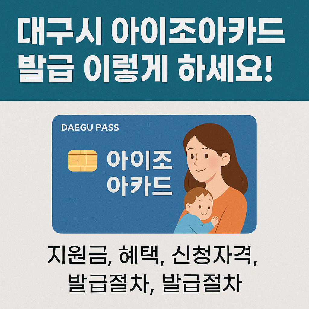대구아이조아카드는 대구시에 주소지를 둔 임산부와 출산가정을 위한 복지카드로, 신청 자격 조건을 충족하면 간편한 온라인 또는 방문 신청을 통해 발급받을 수 있습니다.
