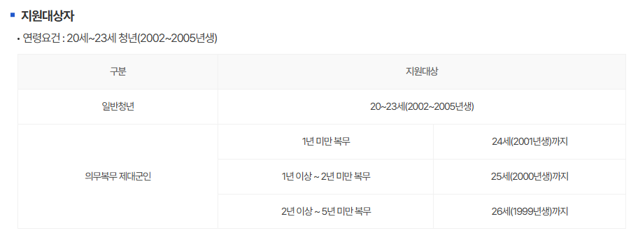 - 제대군인 예외: 군 복무 기간에 따라 최대 26세까지 신청 가능